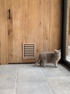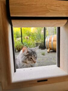 A wooden cat flap in glass is absolutely beautiful ! Not only beautiful, but it’s also draught-free, insulated and safe! We know it’s not easy to organise, but we’re more than happy to help you.