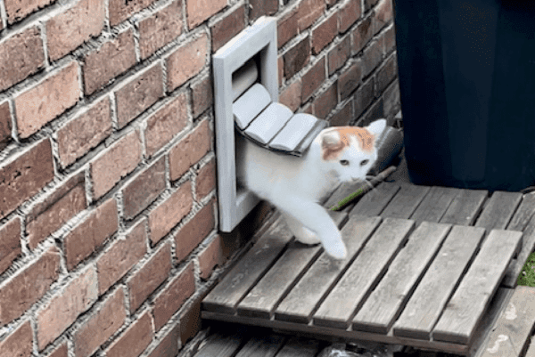 One of the things that makes our doors stand out is the non-transparent flap. You’ll need to show your dog or cat how to use it (check out the 3-step training for more info), but for a cat that’s not used to it, it’s not that clear how to find the door on its own and open it to get into a strange ‘nest’.