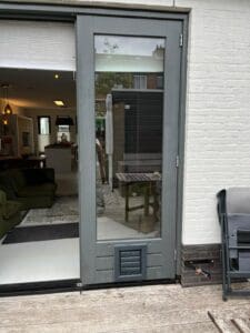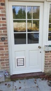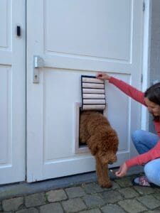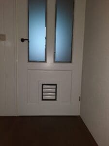 Une trappe pour chien dans une porte en bois, pvc, aluminium, …