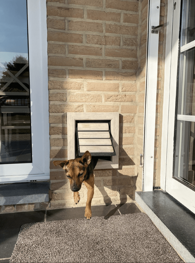 Er zijn er die het nu begrepen hebben en zelf met spurt binnen & buiten zullen vliegen maar zo zijn ze niet allemaal. Als je merkt dat jouw hond naar buiten wil maar toch niet meteen z’n luik gebruikt, ga dan terug naar stap 1: ga jij ‘m roepen aan de buitenkant en wees geduldig. Als hij buiten komt – meteen stap 2: belonen met snoepje en terug binnen roepen met een snoepje, buiten roepen en ‘m geen snoepje meer geven maar een knuffel, bouw de snoepjes snel af. Blijf nog even bij ‘m buiten maar ga dan alleen terug naar binnen. En als hij niet zelf door het luik naar binnen komt maar voor de deur staat ? Zelfde scenario, roep ‘m binnen door het luik.