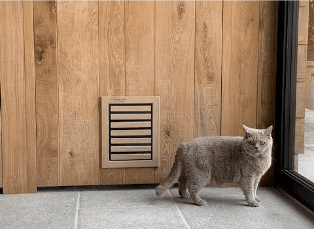 Afsluitbaar Kattenluik van hout en hondenluik voor in een raam of een deur gemaakt door Tomsgates